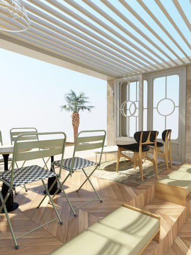 Karaköy kafeler bölgesinde faaliyet gösteren Luby, iki katlı bir cafe olarak tasarlanmıştır. Üst katında, tamamen açılabilen pergole sistemi sayesinde mevsimsel şartlara kolayca uyum sağlayabilen mekan, hem iç hem de dış mekan olarak kullanılabilecek şekilde düzenlenmiştir.